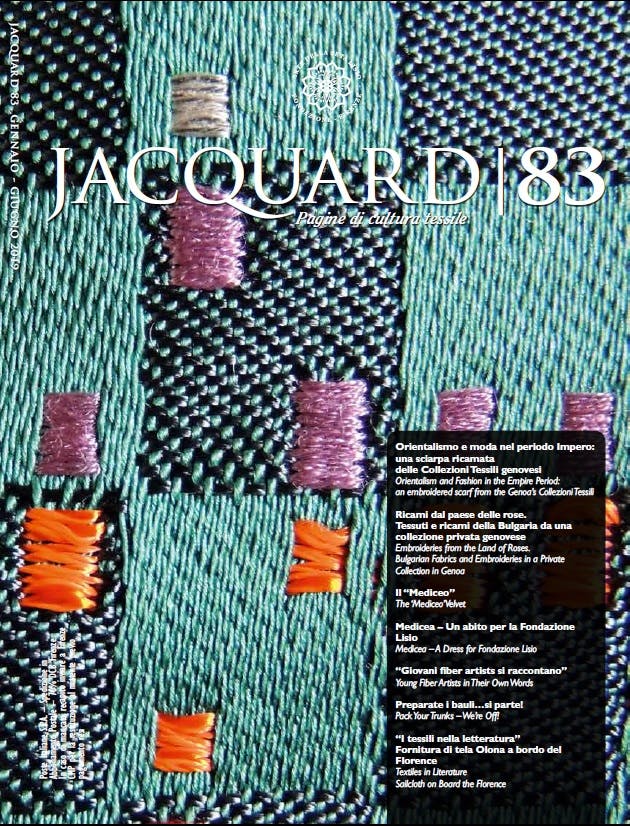 We open this new issue with reflections on studies conducted on occasion of restoration of a fragile woman’s embroidered scarf held by Genoa’s Collezioni Tessili. Of note, the persistence of Orientalism in early 19th-century taste, and the exchanges of models and techniques between the West and India and other Asian countries.