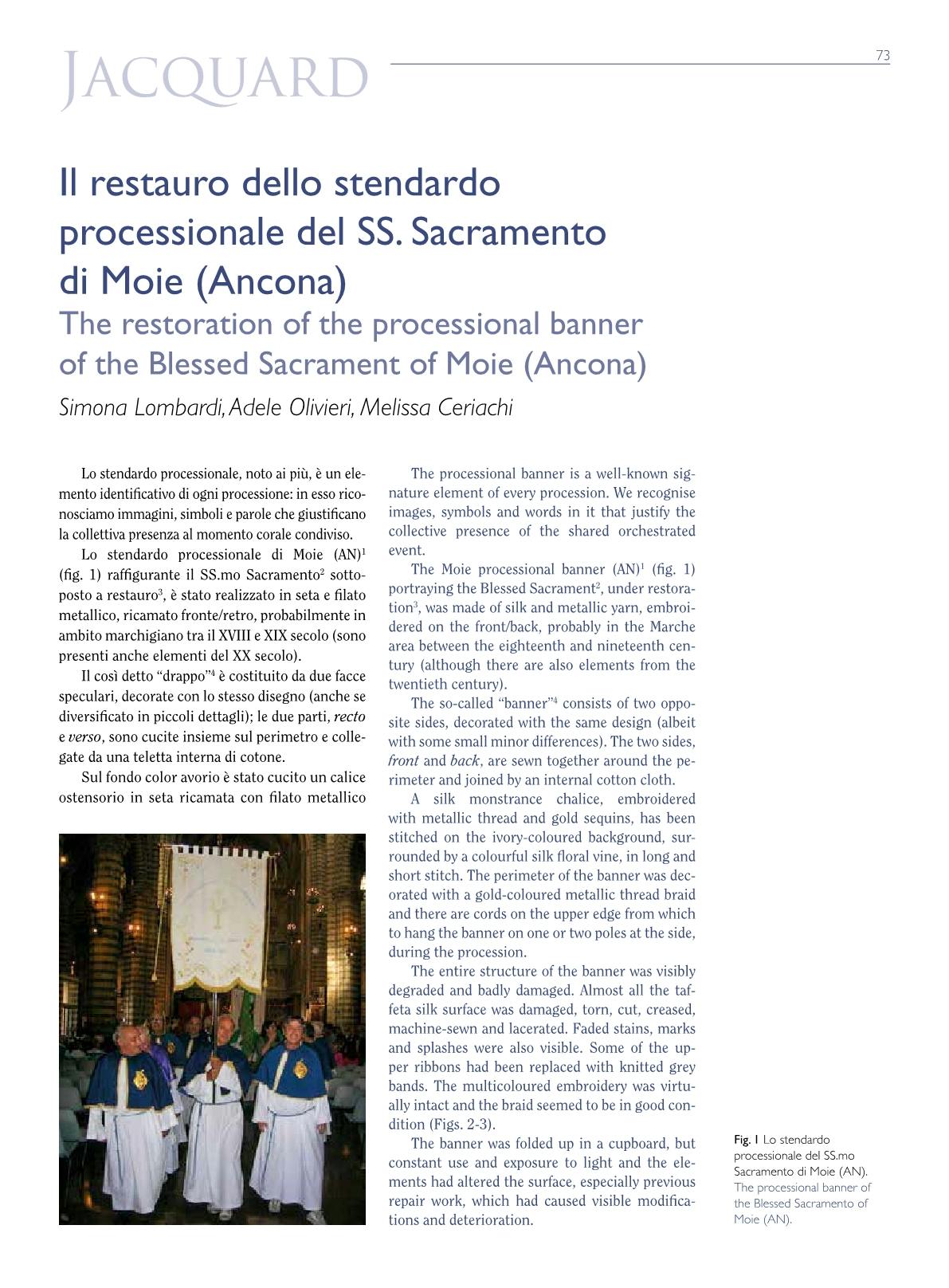 The restoration of the processional banner of the Blessed Sacrament of Moie (Ancona)