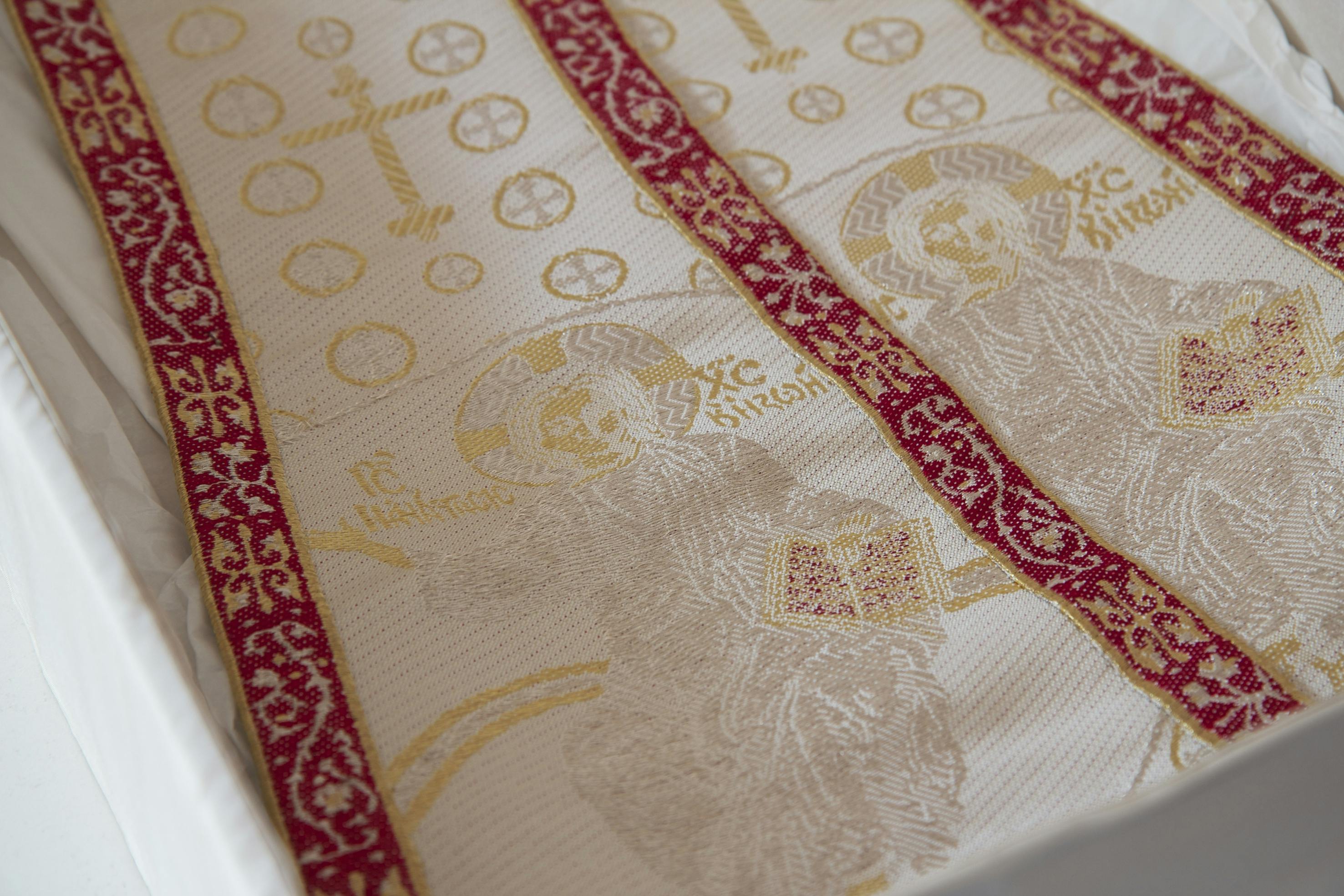 Thanks to the skill of his designers, Mastro Lisio succeeded in obtaining, in a woven cloth, a design manifesting the same effects of depth and minute detail created with needle and thread in the Byzantine work.