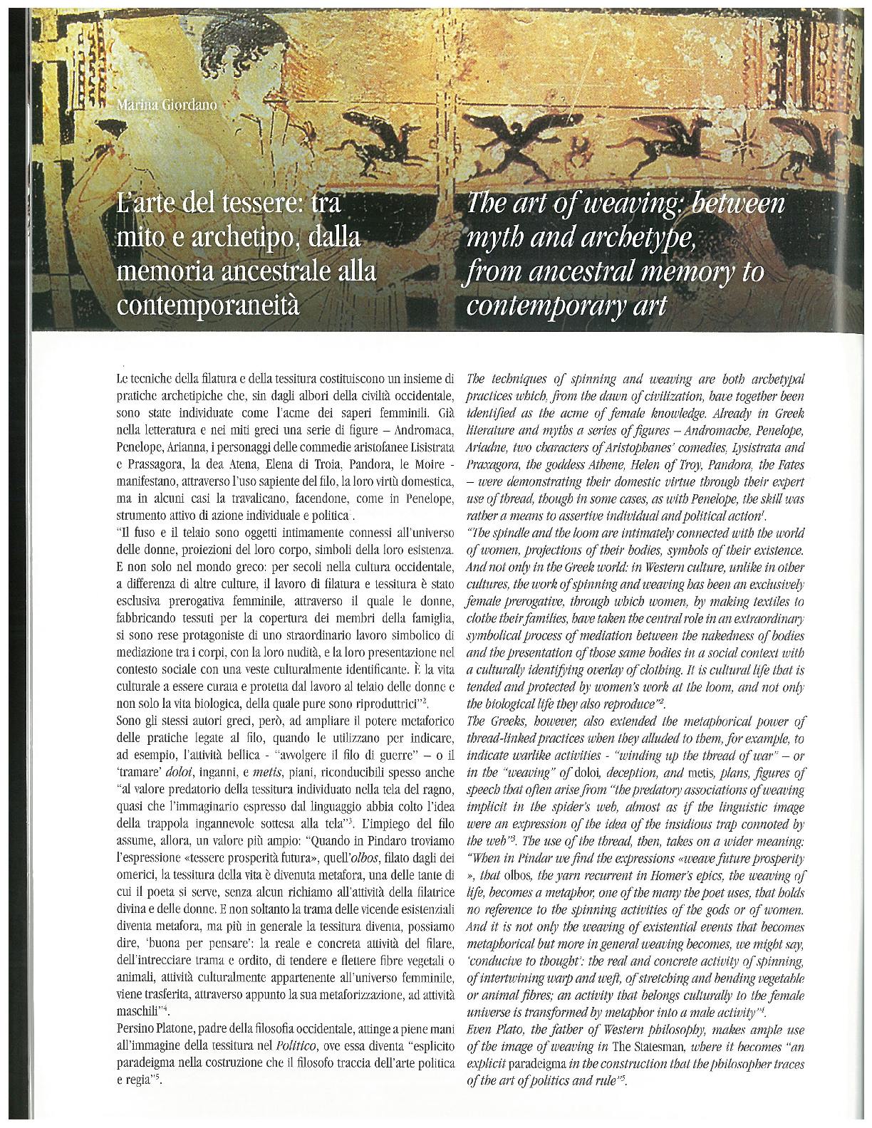 The art of weaving: Between myth and archetype, from ancestral memory to contemporary art