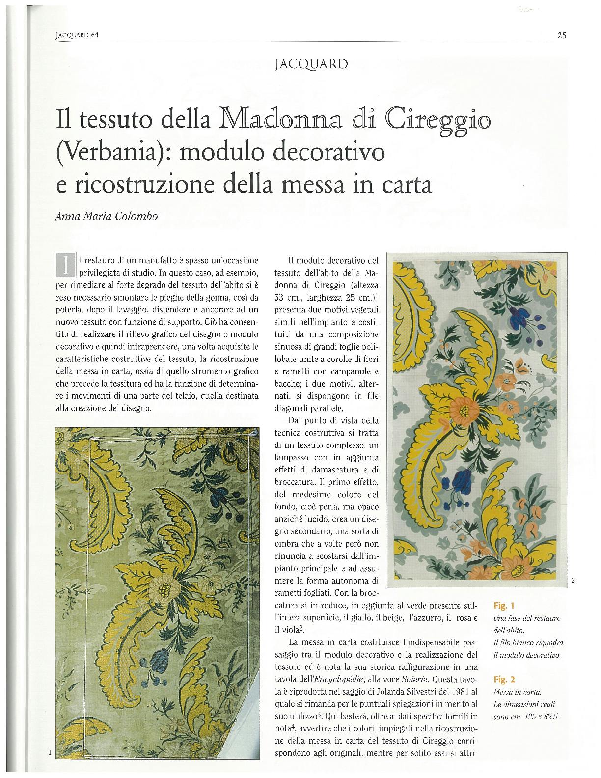 The fabric of the Madonna of Cireggio (Verbania): decorative pattern and reconstruction of the printing process