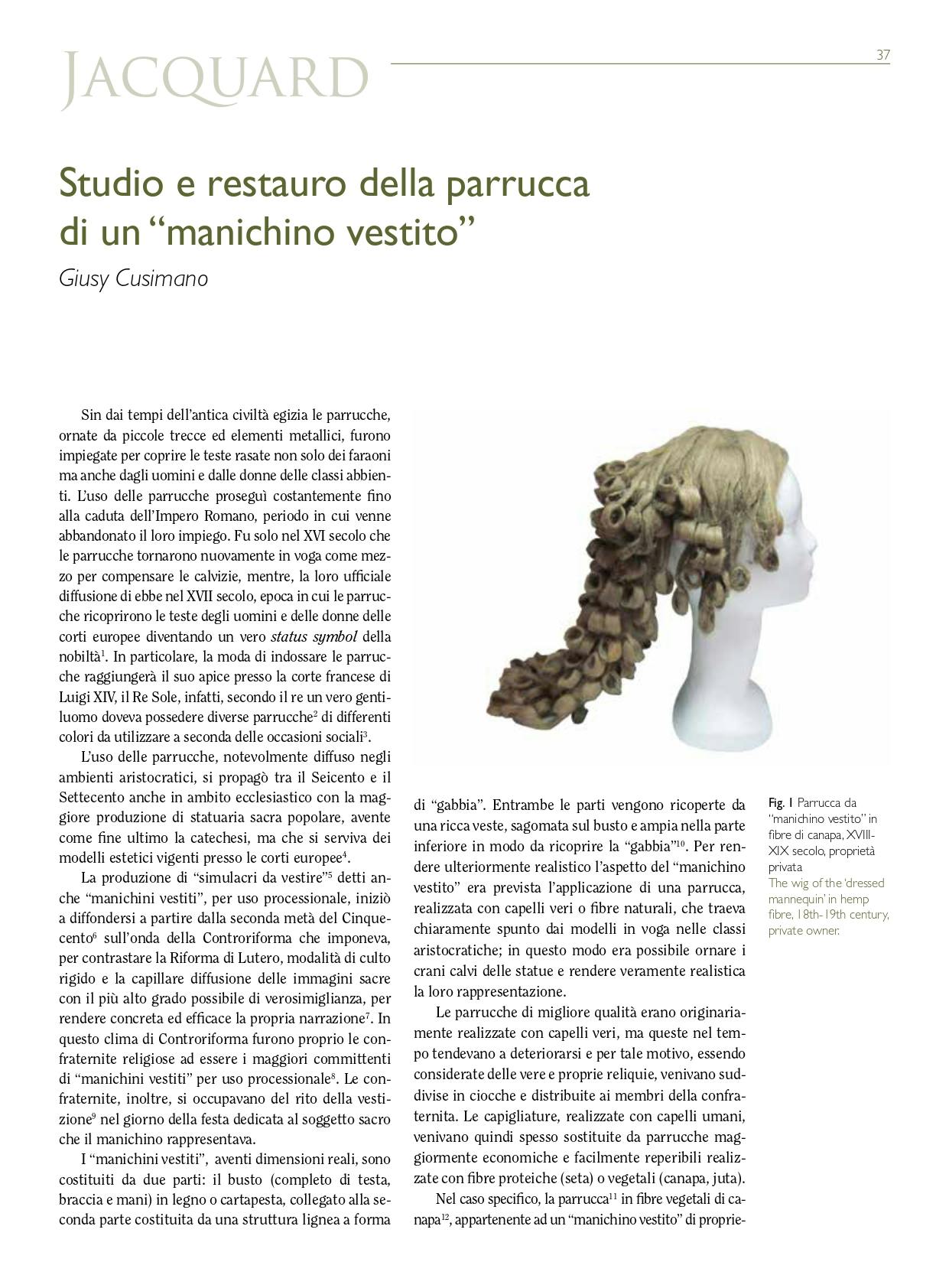 The other articles deal with two instances of restoration, one relative to the wig adorning a ‘dressed mannequin’, an important detail of a genre of statuary we have investigated numerous times; the second, the Libro dei Capitoli of the Compagnia di San Benedetto Bianco of Florence.