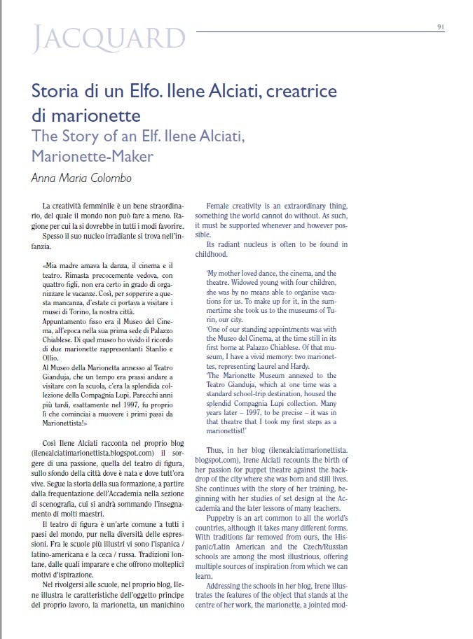 A date at the puppet theatre is our chance to meet Ilene Alciati, a creator of marionettes who attends to even the tiniest details of her creatures, before we look in on restoration of a silk shade from the second half of the 1800s: an unforgettable occasion to enjoy moments from the everyday life of a not-so-distant past.