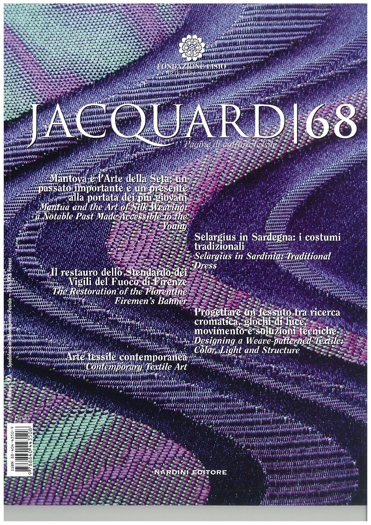 Two areas of the Lisio Foundation, weaving and tailoring, were involved in a challenging project to renovate the costume of the Captain of the People from Orvieto’s Historical Procession, reweaving the “Lorenzetti” lampas and sewing the costume based on the model of the original. Two other restoration projects followed - the first on a processional banner and the second on a “succo d’erba” painted tapestry - while a short feature presents Lorena Giannini, a Turin-based fashion designer. This double issue closes with an article in memory of Flavia Fiori, the academic from Oleggio, who passed away last year and dedicated her life to researching and promoting interest in the textile heritage of the Novara area.