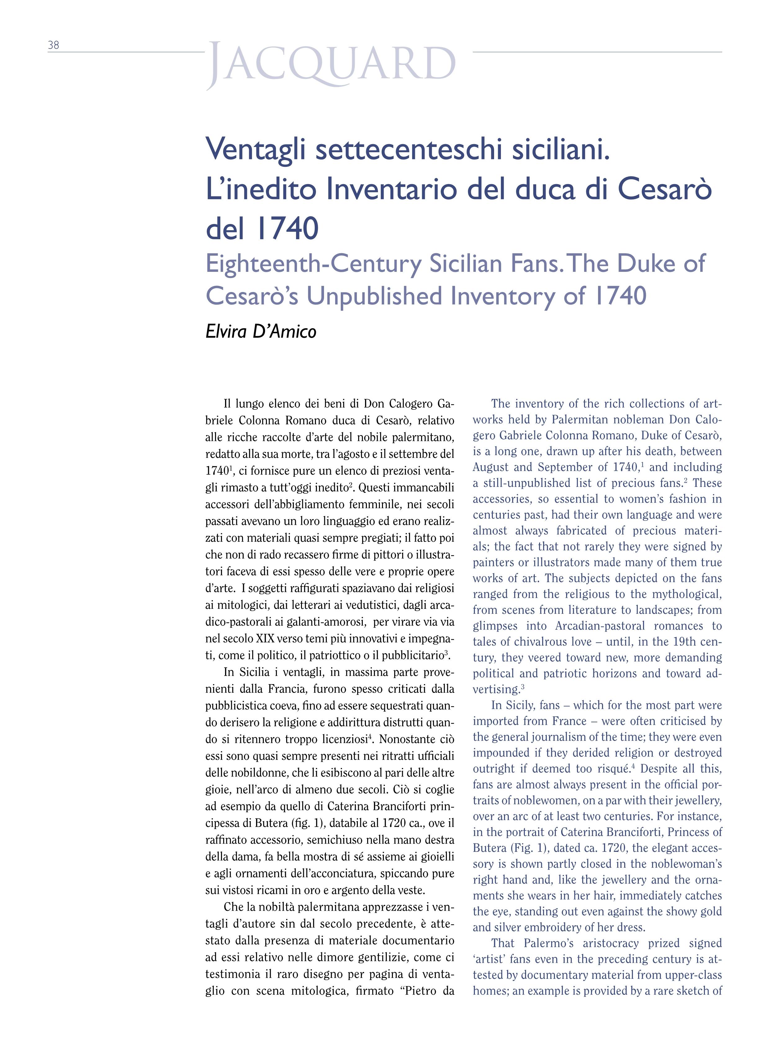 Eighteenth-Century Sicilian Fans. The Duke of Cesarò’s Unpublished Inventory of 1740