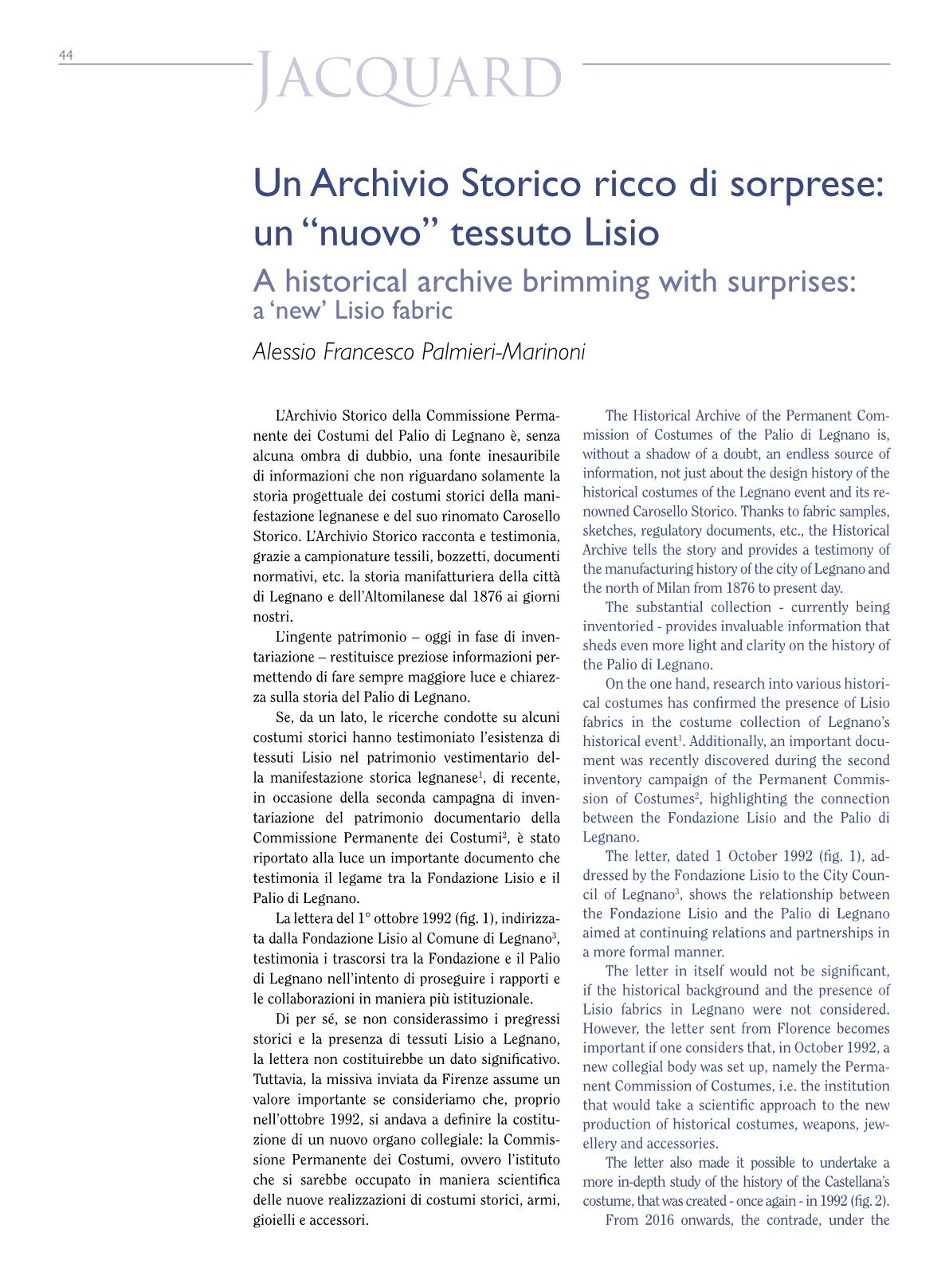 A Historical Archive Full of Surprises: a "New" Lisio Fabric