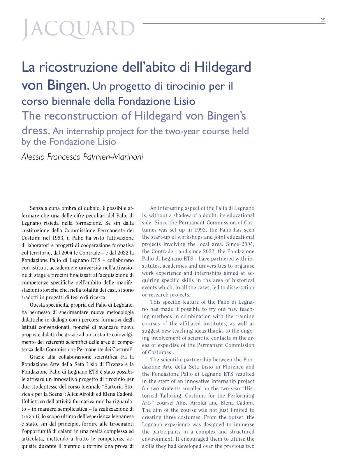 The reconstruction of Hildegard von Bingen's dress. An internship project for the two-year Lisio Foundation program.