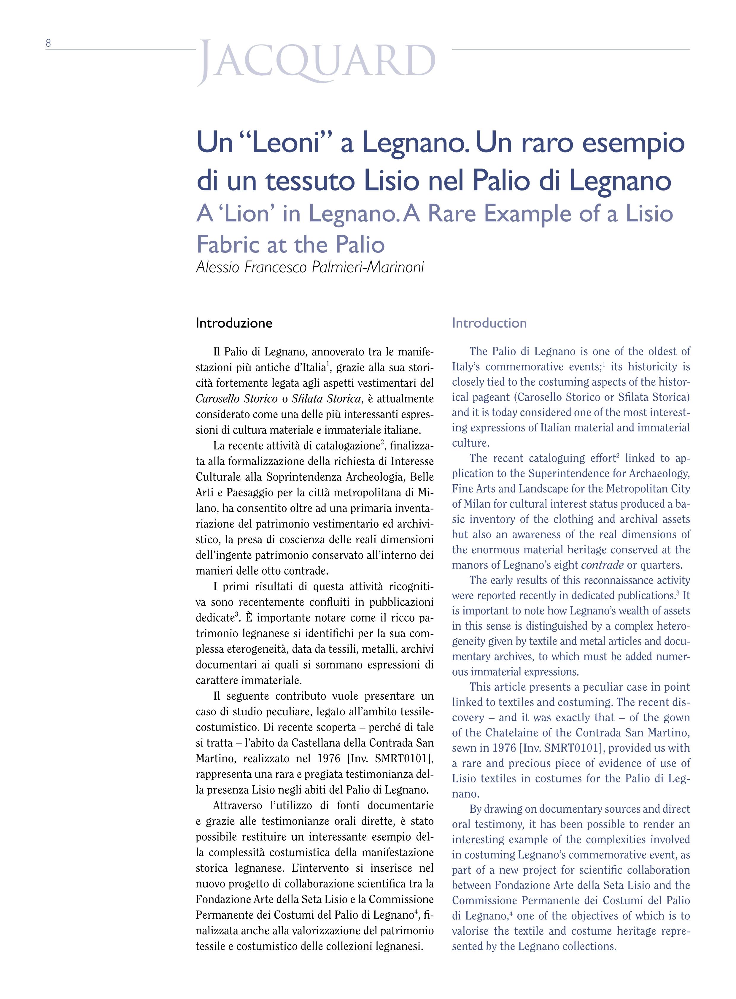A ‘Lion’ in Legnano. A Rare Example of a Lisio Fabric at the Palio