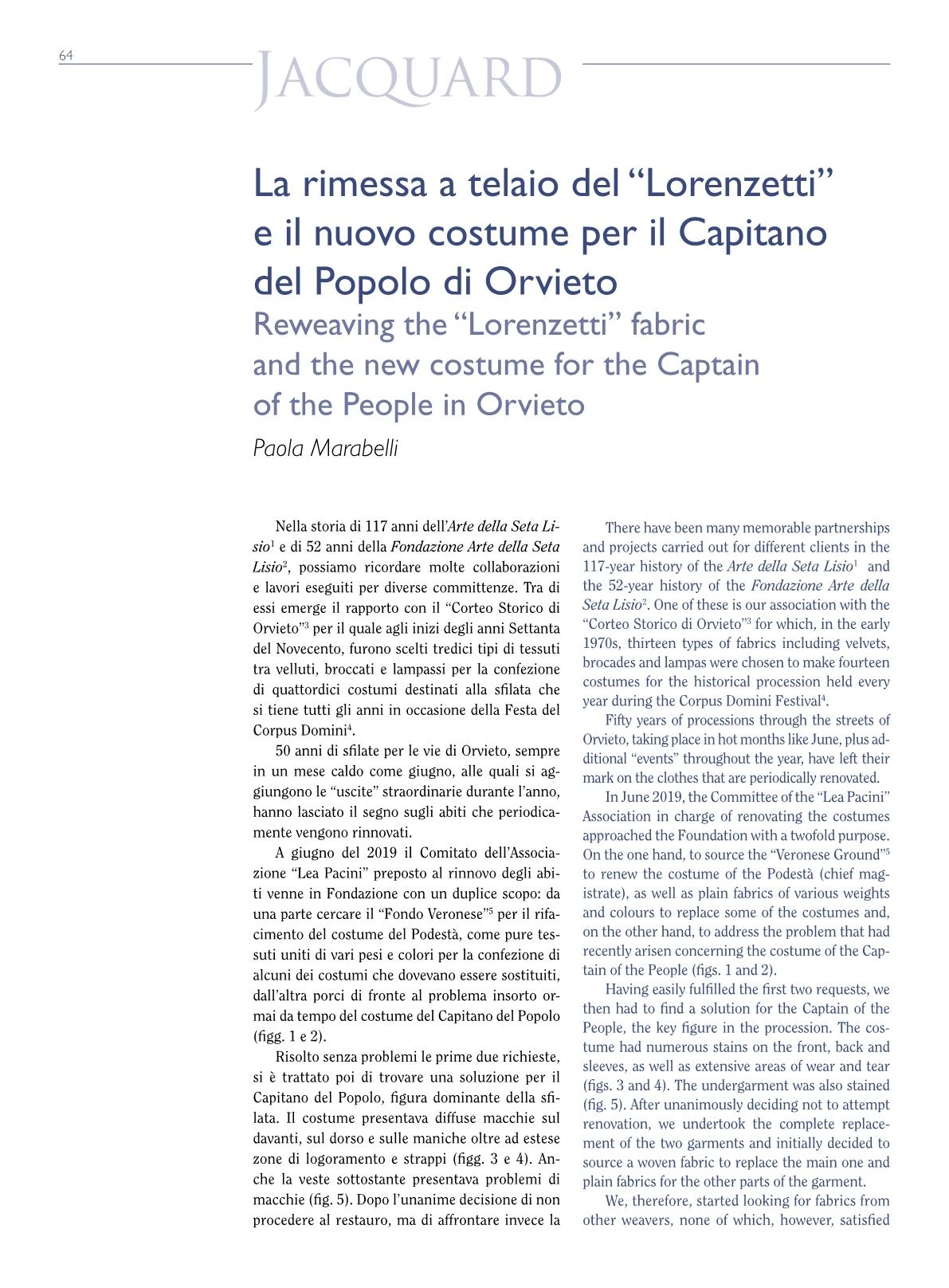 Reweaving the “Lorenzetti” fabric and the new costume for the Captain of the People in Orvieto