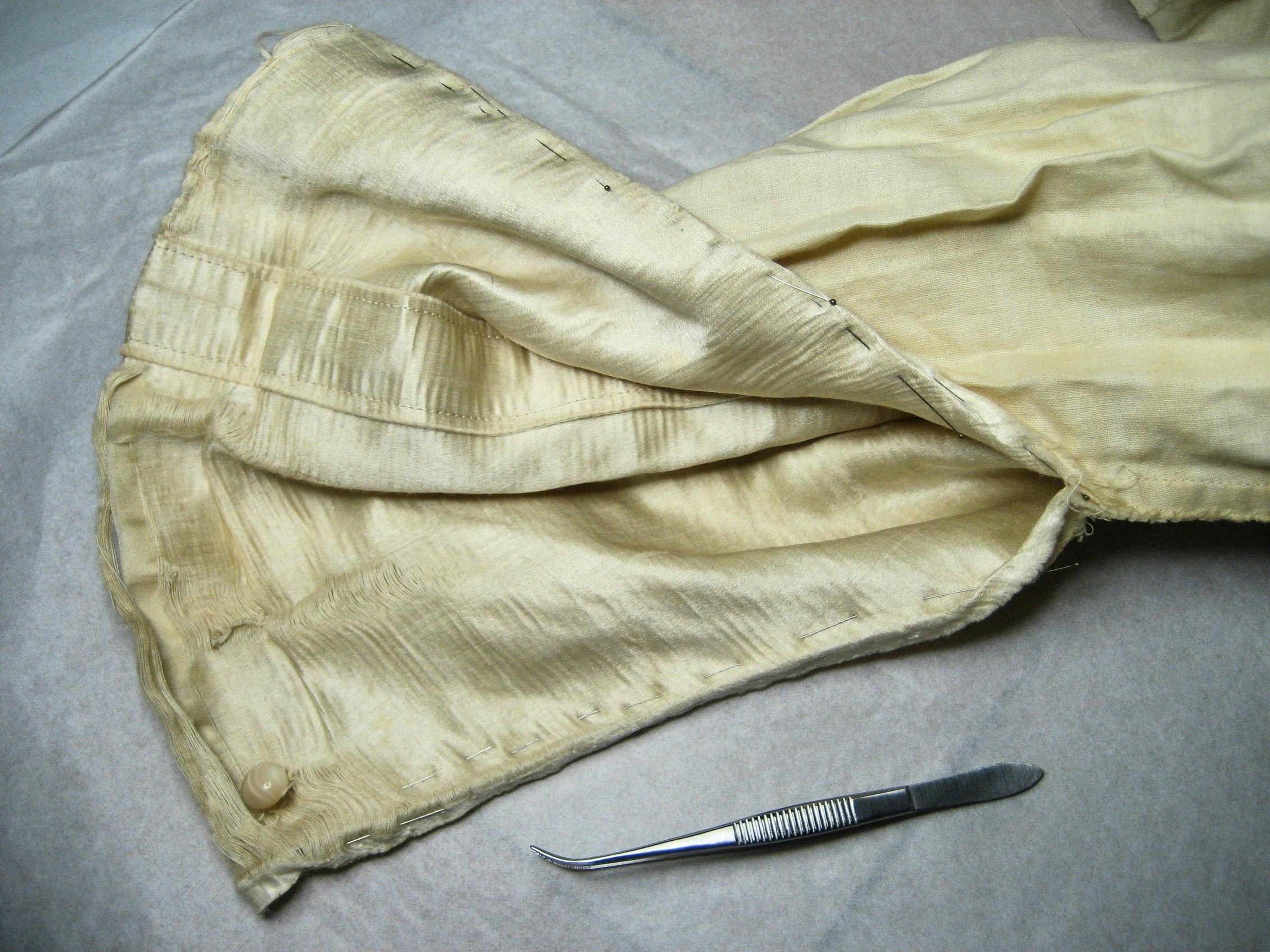 Dopo una breve esposizione del progetto di restauro, il corso prevede l'osservazione dei punti di cucitura nell'abito storico per la loro realizzazione a mano, lo studio dell'abito nella foggia e nelle tecniche utilizzate per ottenere gli effetti di ampiezza della manica e delle caratteristiche della gonna e del corpetto.