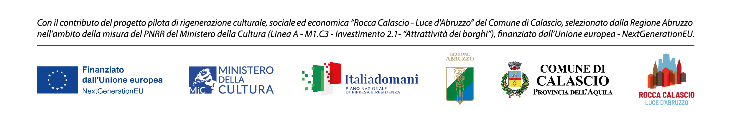 Con il contributo del progetto pilota di rigenerazione culturale, sociale ed economica “Rocca Calascio - Luce d'Abruzzo” del Comune di Calascio, selezionato dalla Regione Abruzzo nell'ambito della misura del PNRR del Ministero della Cultura (Linea A - M1.C3 – Investimento 2.1– “Attrattività dei borghi”), finanziato dall’Unione europea – NextGenerationEU.