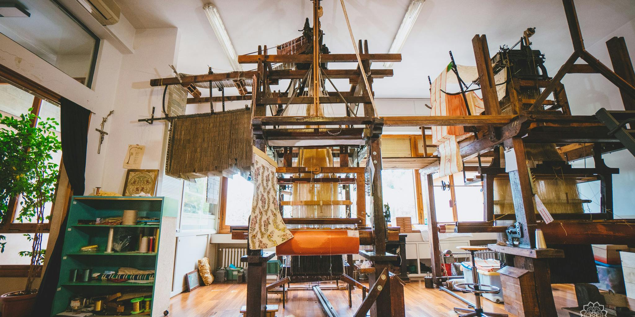 The tour route takes visitors past the Jacquard looms, hand-operated by our master weavers as they create velvets and brocades, and then goes on to the school and the salesroom, the fulcrum of all the precious quality of Fondazione Lisio’s hand-weaving.