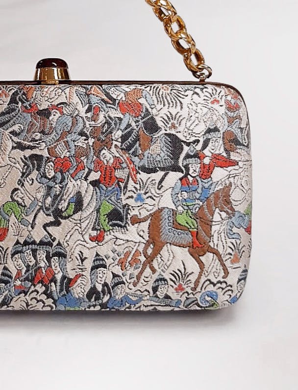 I tessuti sono quelli della Fondazione Arte della Seta Lisio che trovano forma nelle borse gioielli di Fabrizio Verniani (Verniani Bags) e nei capi di Marina Semprini (Lifeobject design made in Florence).