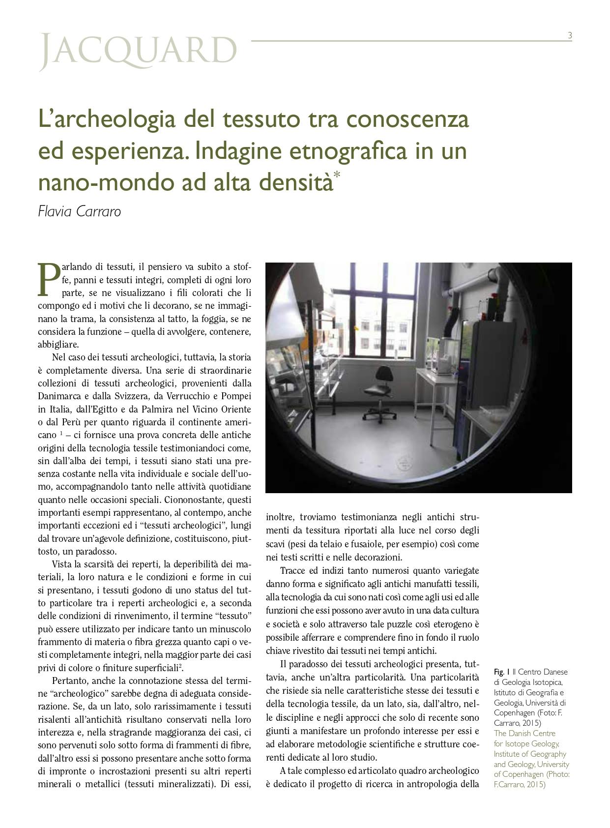L’archeologia del tessuto tra conoscenza ed esperienza. Indagine etnografica in un nano-mondo ad alta densità