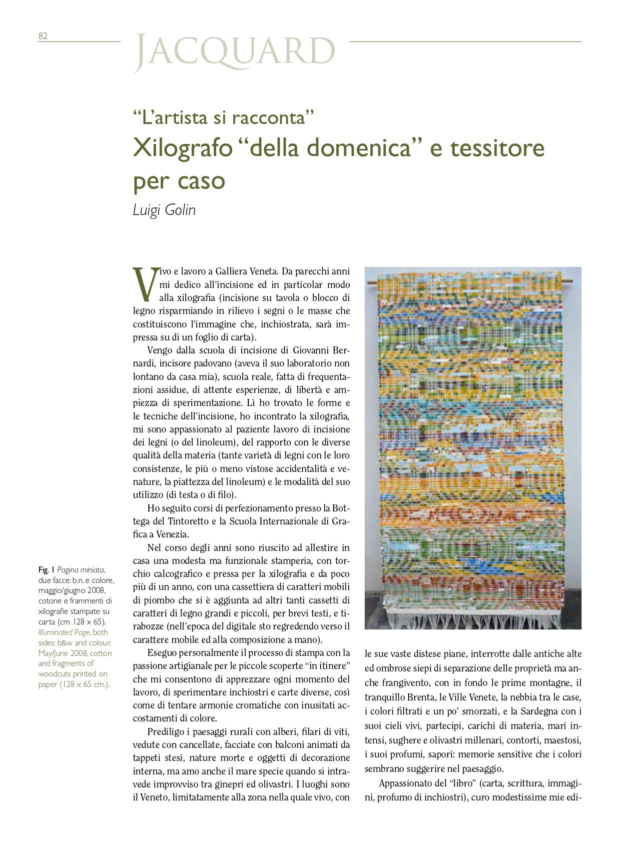 Ancora interdisciplinarità nella trattazione di un tessitore-studioso che in modo brillante ci sciorina contenuti eruditi e riflessioni interessanti sul panno rigato e non solo. Denso di citazioni puntuali, è un modo di leggere il tessile spaziando e allargando l’orizzonte.