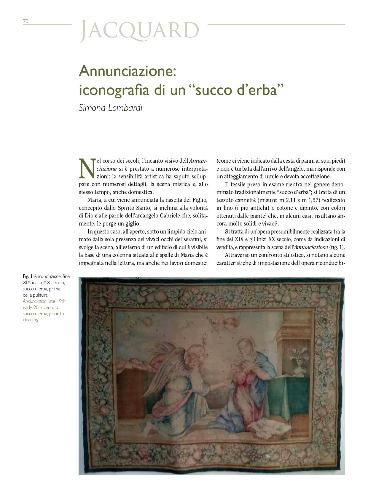 Con un “balzo” ritorniamo in occidente per vedere una Annunciazione dipinta su un “succo d’erba” come si definisce quel particolare tipo di teli, realizzati in lino o cotone e dipinti con coloranti ricavati dalle piante e che ricordano le opere ad arazzo, ma che costituiscono un genere a sé stante.