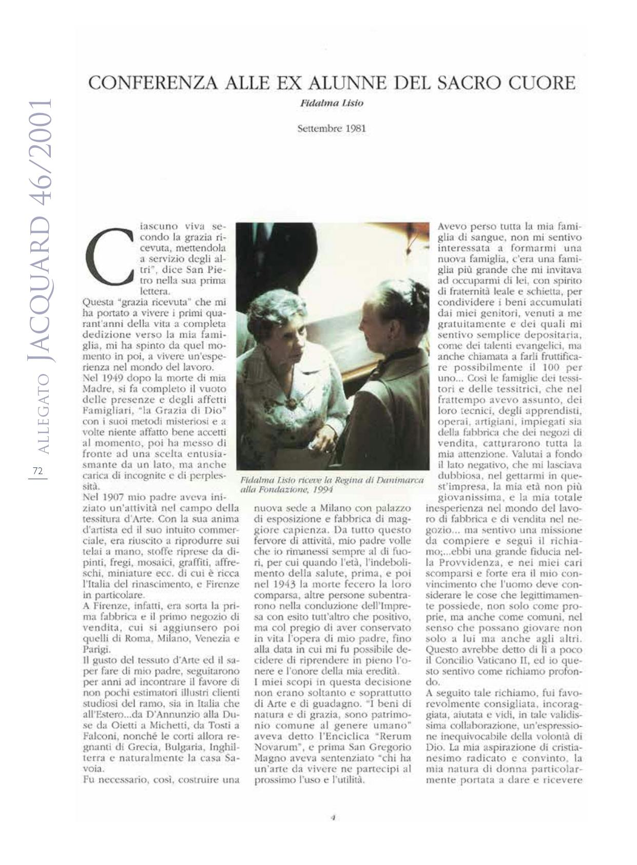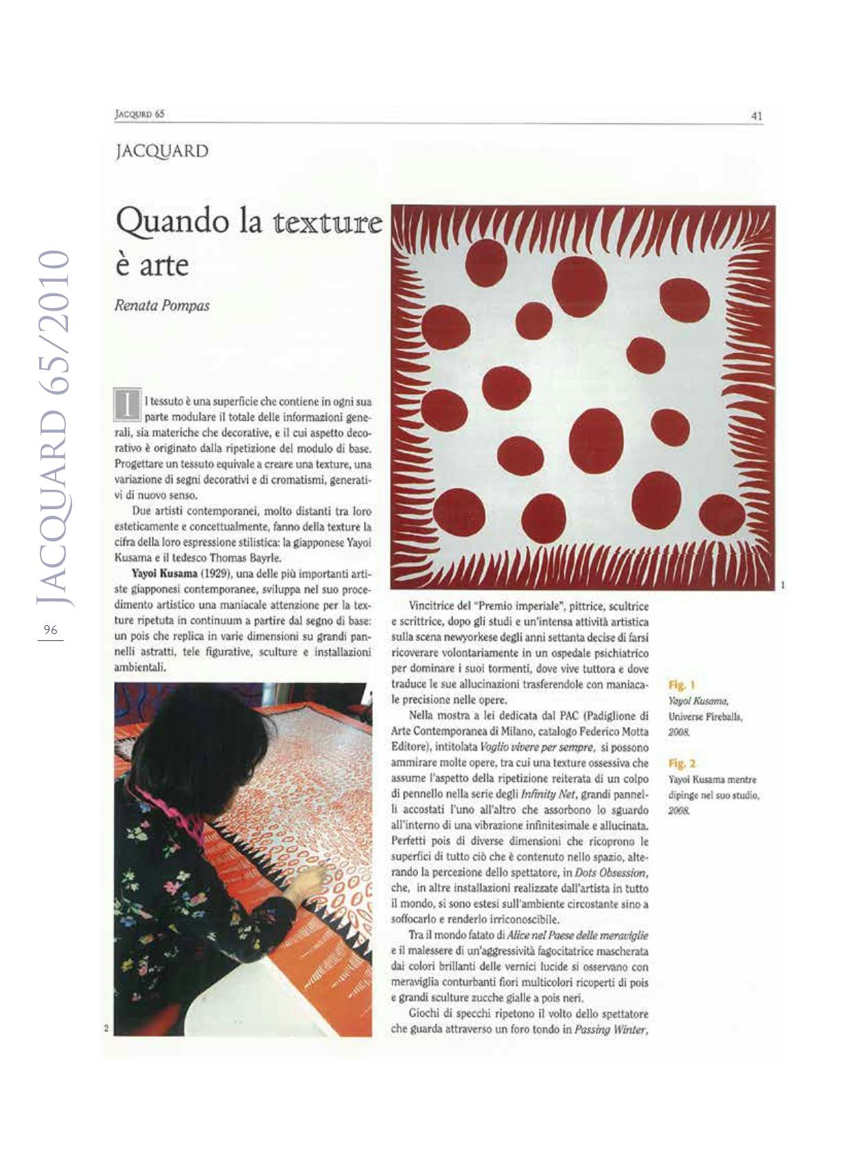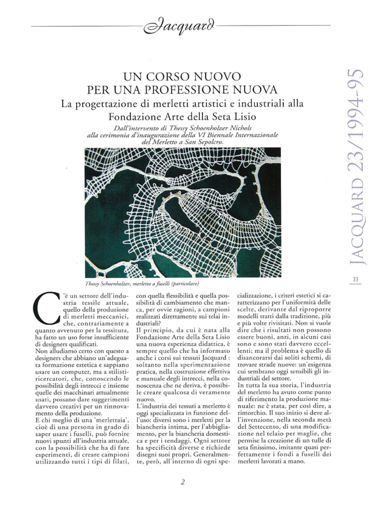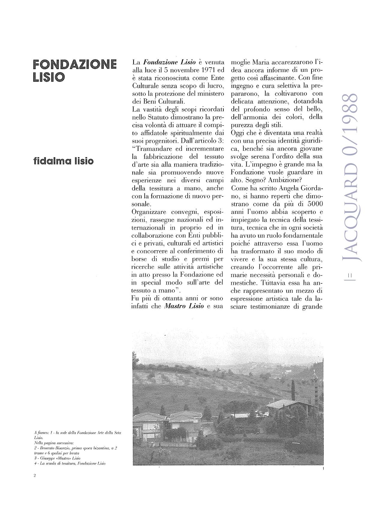 Celebrare 30 anni di vita per una pubblicazione di settore come “Jacquard” non è cosa da poco. La determinazione di proseguire sulla strada intrapresa nel 1989 nonostante le difficoltà dovute all’organizzazione e soprattutto ai costi, è sostenuta dalla stessa missione che Fidalma Lisio disegnò e attuò con l’istituzione della Fondazione: tramandare, sostenere, valorizzare le Arti tessili.