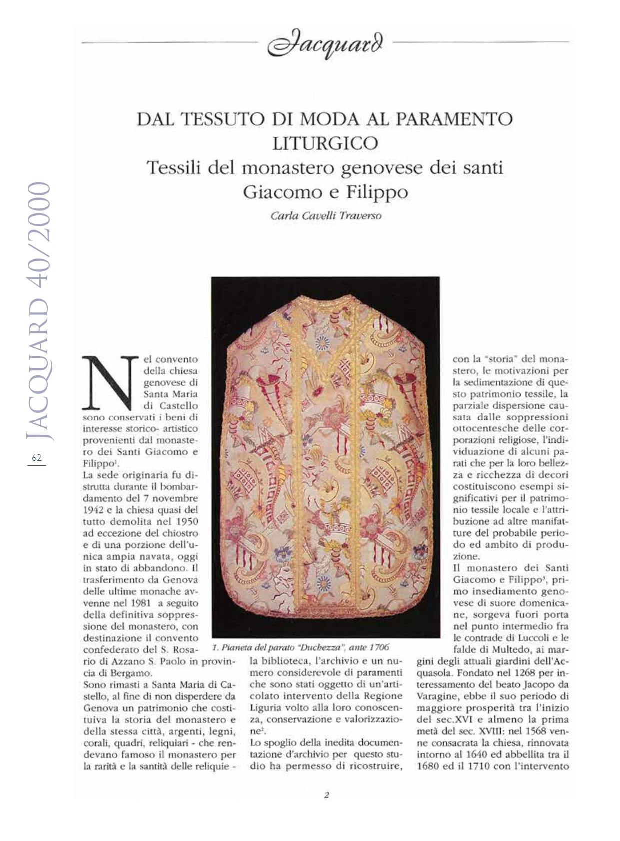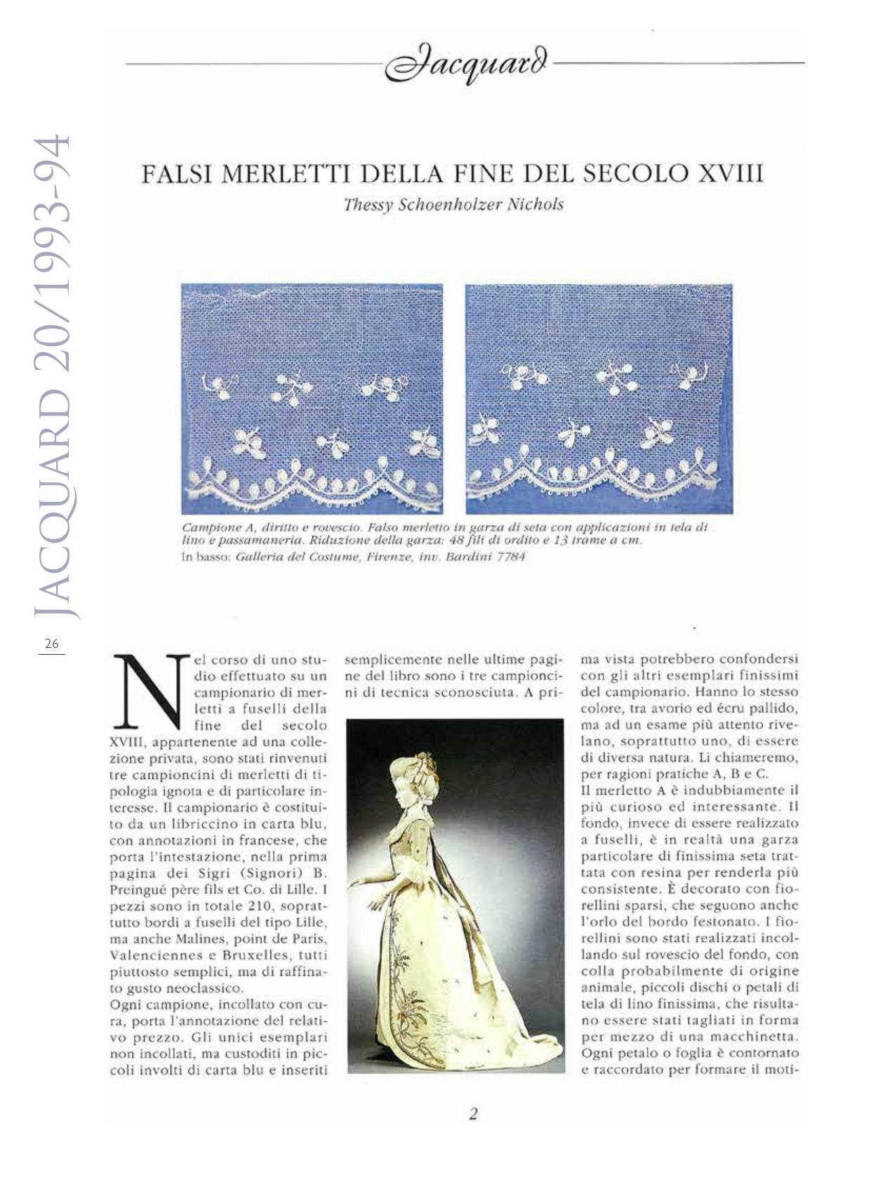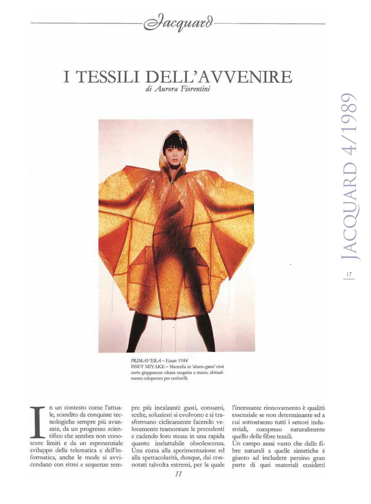 Questo numero è composto da una selezione di articoli che coprono un po’ tutti i settori trattati nel tempo. La scelta è stata difficile dato che sono stati tanti gli interventi di interesse e quindi l’esclusione da questa ristampa non è dovuta alla mancanza di validità dei contenuti. Tra gli obiettivi che ci siamo posti, c’è quello di rendere presto disponibili, attraverso il nostro sito, tutti gli articoli, in modo da fornire la possibilità di avere memoria di un materiale sicuramente prezioso. Augurandovi buona lettura, ribadiamo il nostro impegno per il futuro al servizio della cultura tessile sempre attento e vivace come è stato in questi 30 anni.