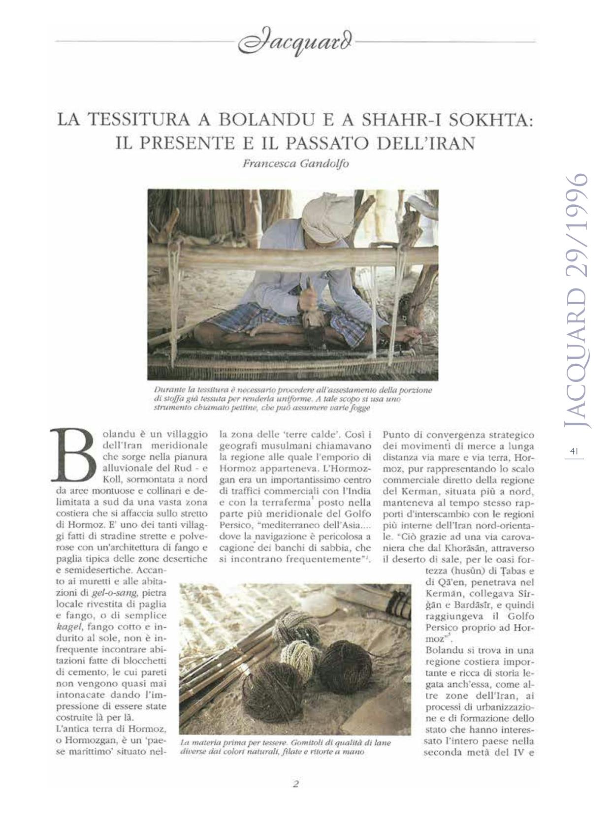 La tessitura a Bolandu e a Shahr-i Sokhta: il presente e il passato dell’Iran