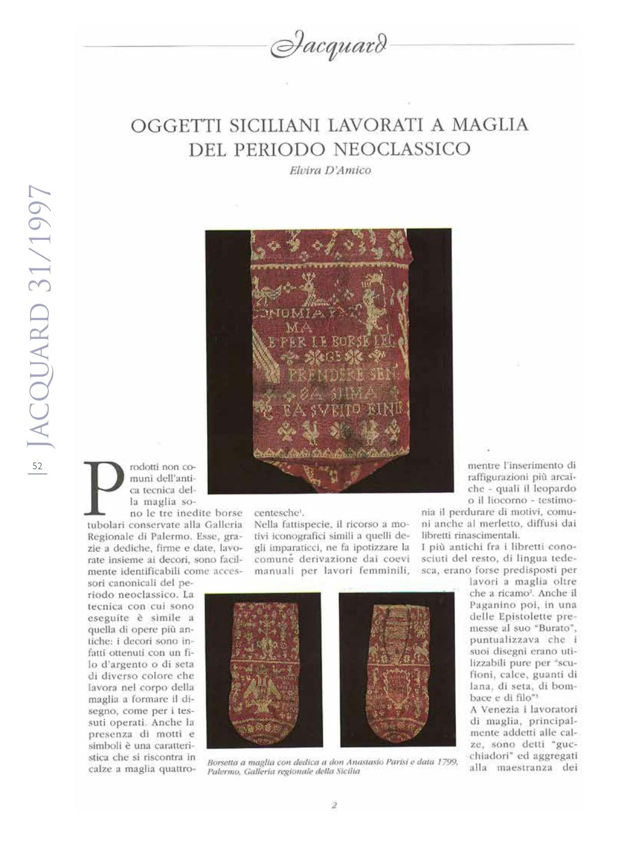 Oggetti siciliani lavorati a maglia del periodo neoclassico