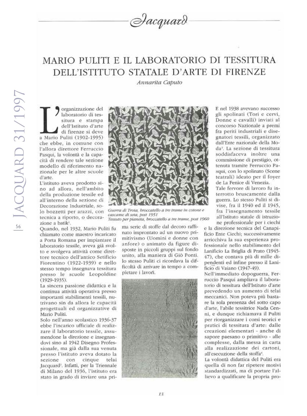 Mario Puliti e il laboratorio di tessitura dell’Istituto Statale d’Arte di Firenze