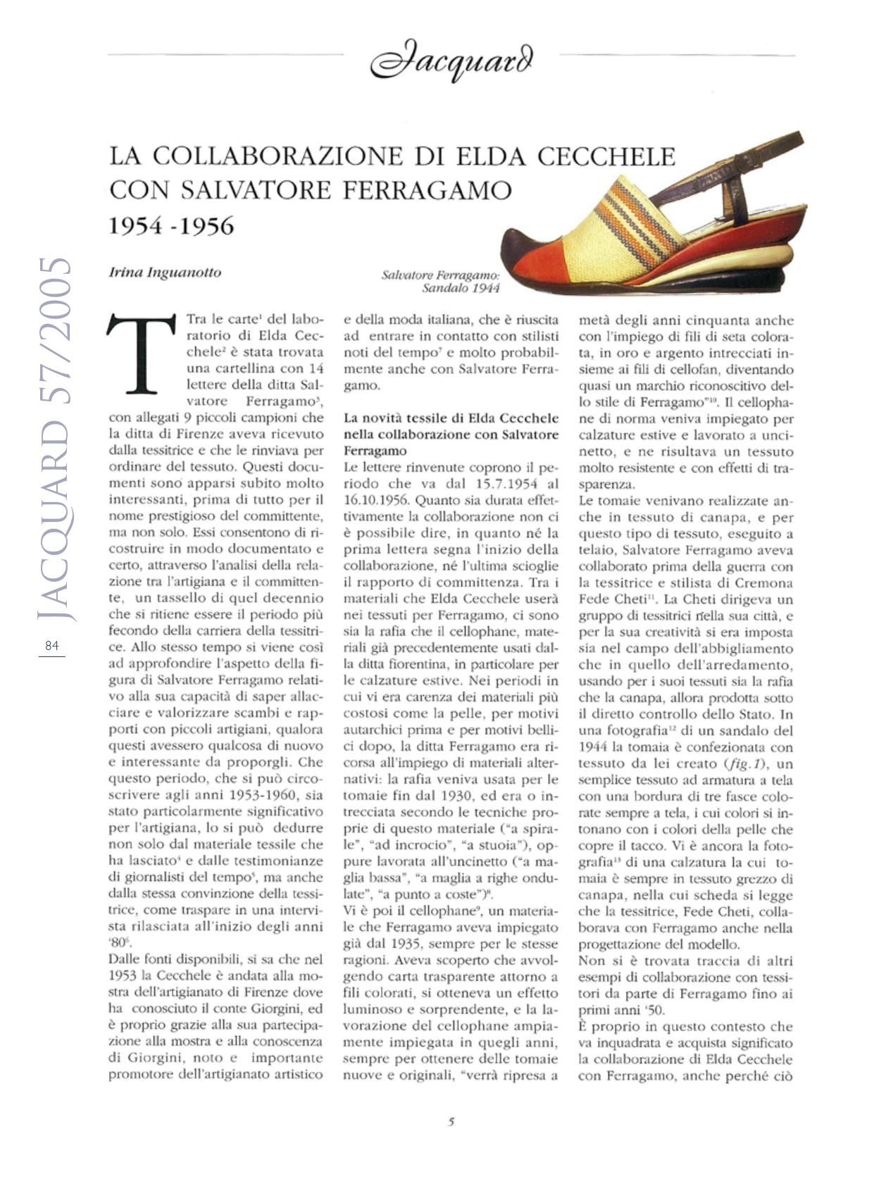 La collaborazione di Elda Cecchele con Salvatore Ferragamo 1954-1956