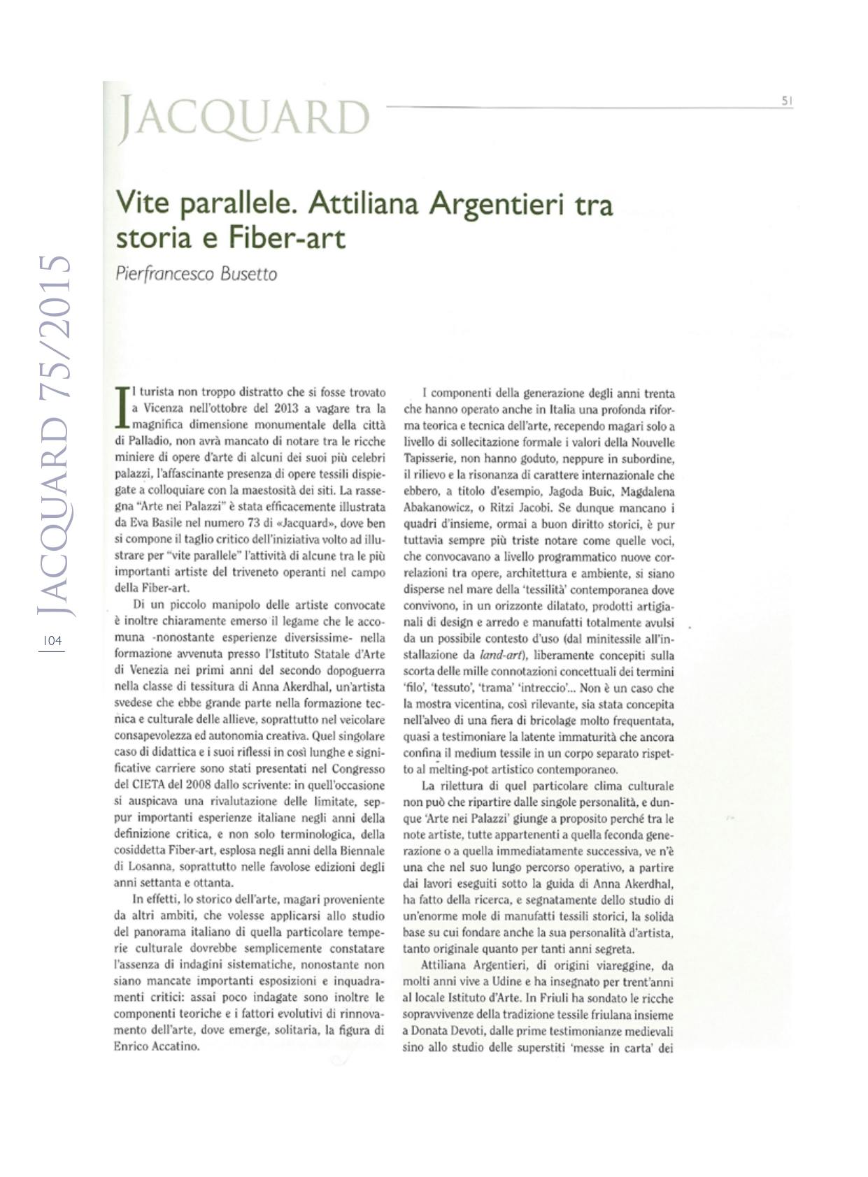 Vite parallele. Attiliana Argentieri tra storia e Fiber-art
