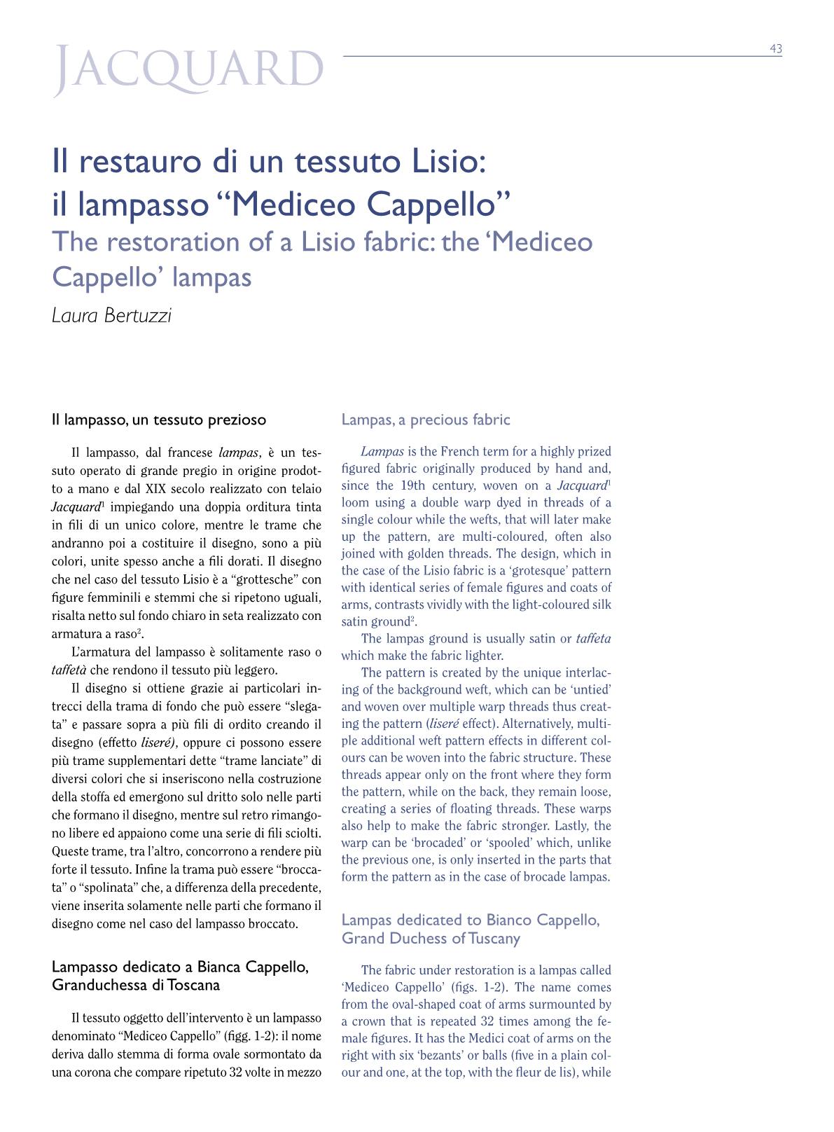 Il restauro di un tessuto Lisio: il lampasso"Mediceo Cappello"