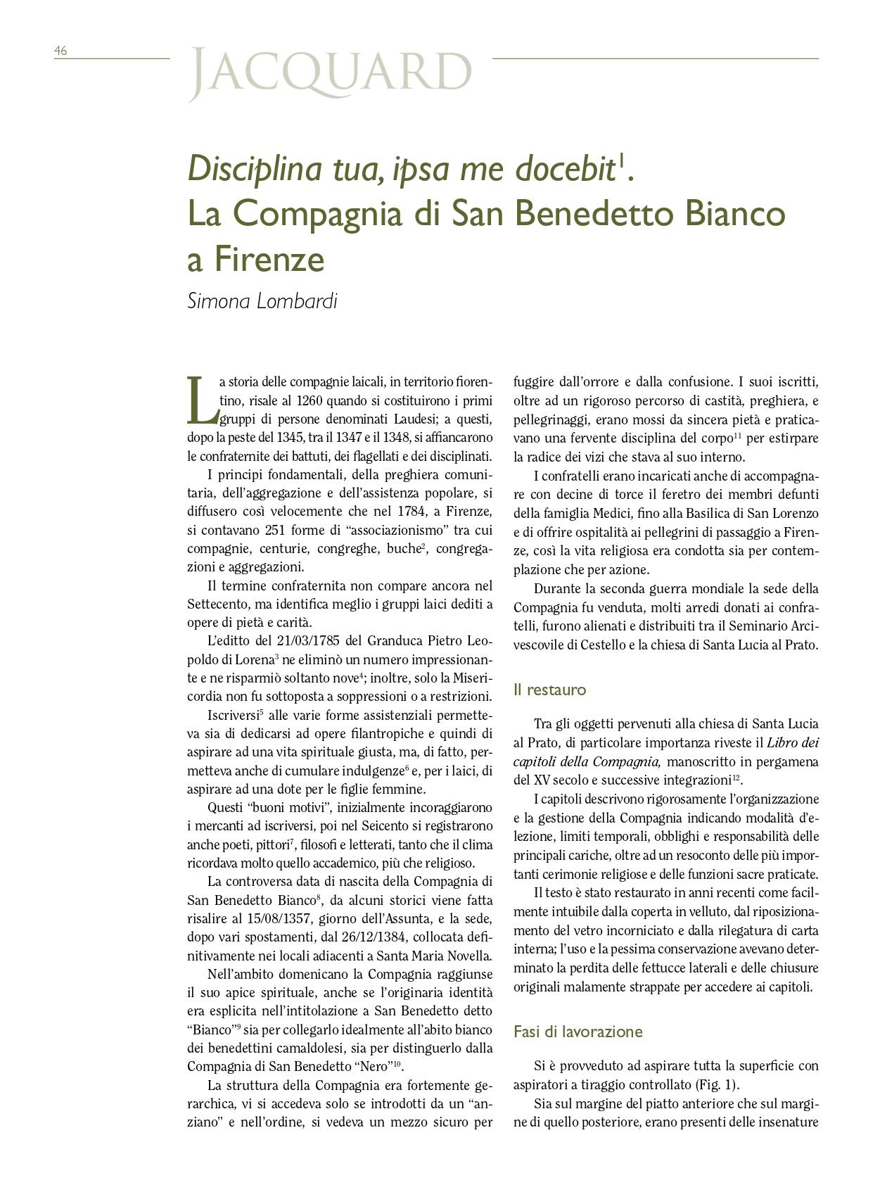 Disciplina tua, ipsa me docebit. La Compagnia di San Benedetto Bianco a Firenze