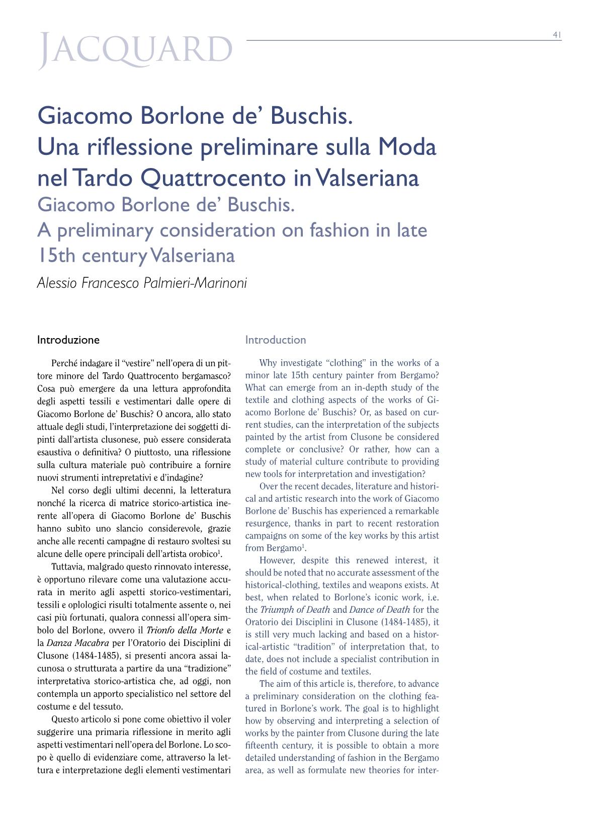 Giacomo Borlone de’ Buschis. Una riflessione preliminare sulla Moda nel Tardo Quattrocento in Valseriana