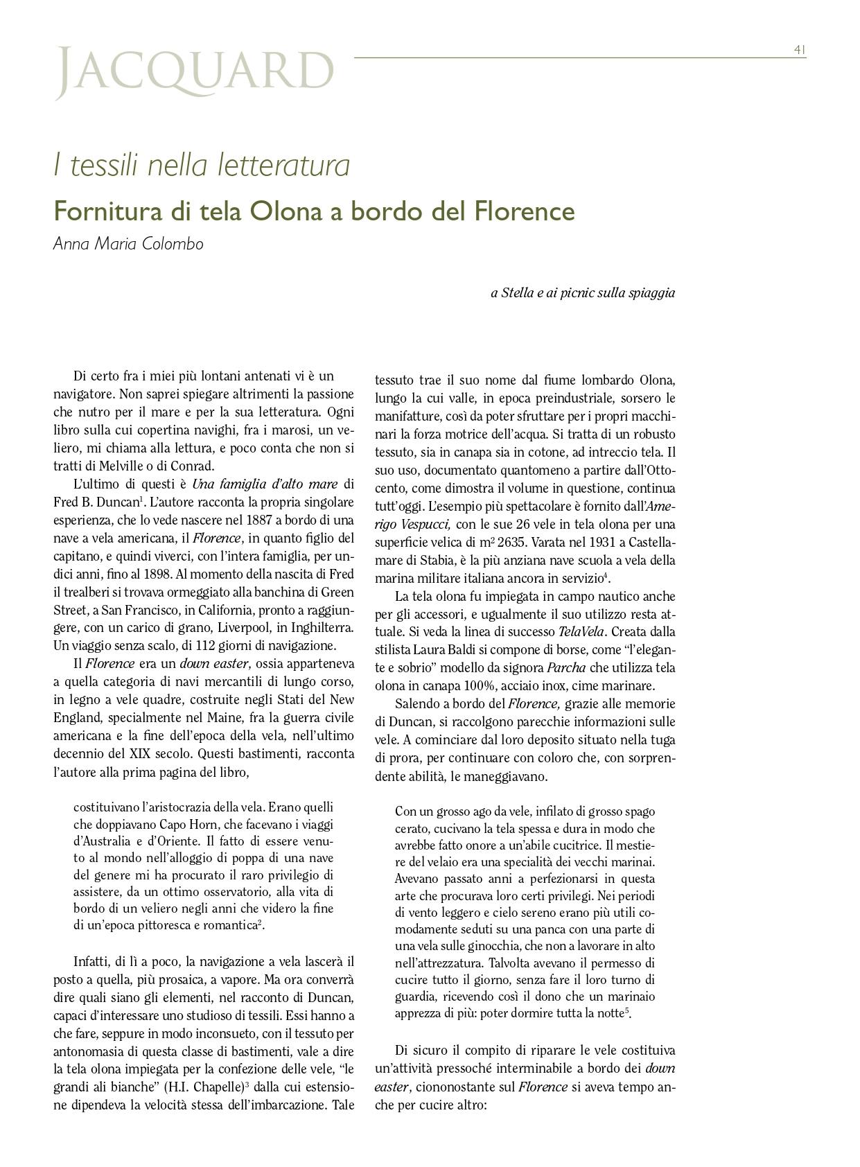 “I tessili nella letteratura” - Fornitura di tela Olona a bordo del Florence
