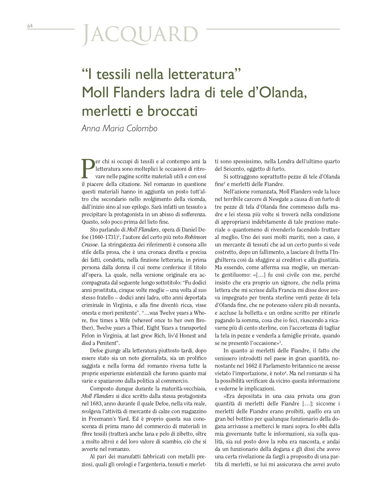 “I tessili nella letteratura”. Moll Flanders ladra di tele d’Olanda, merletti e broccati