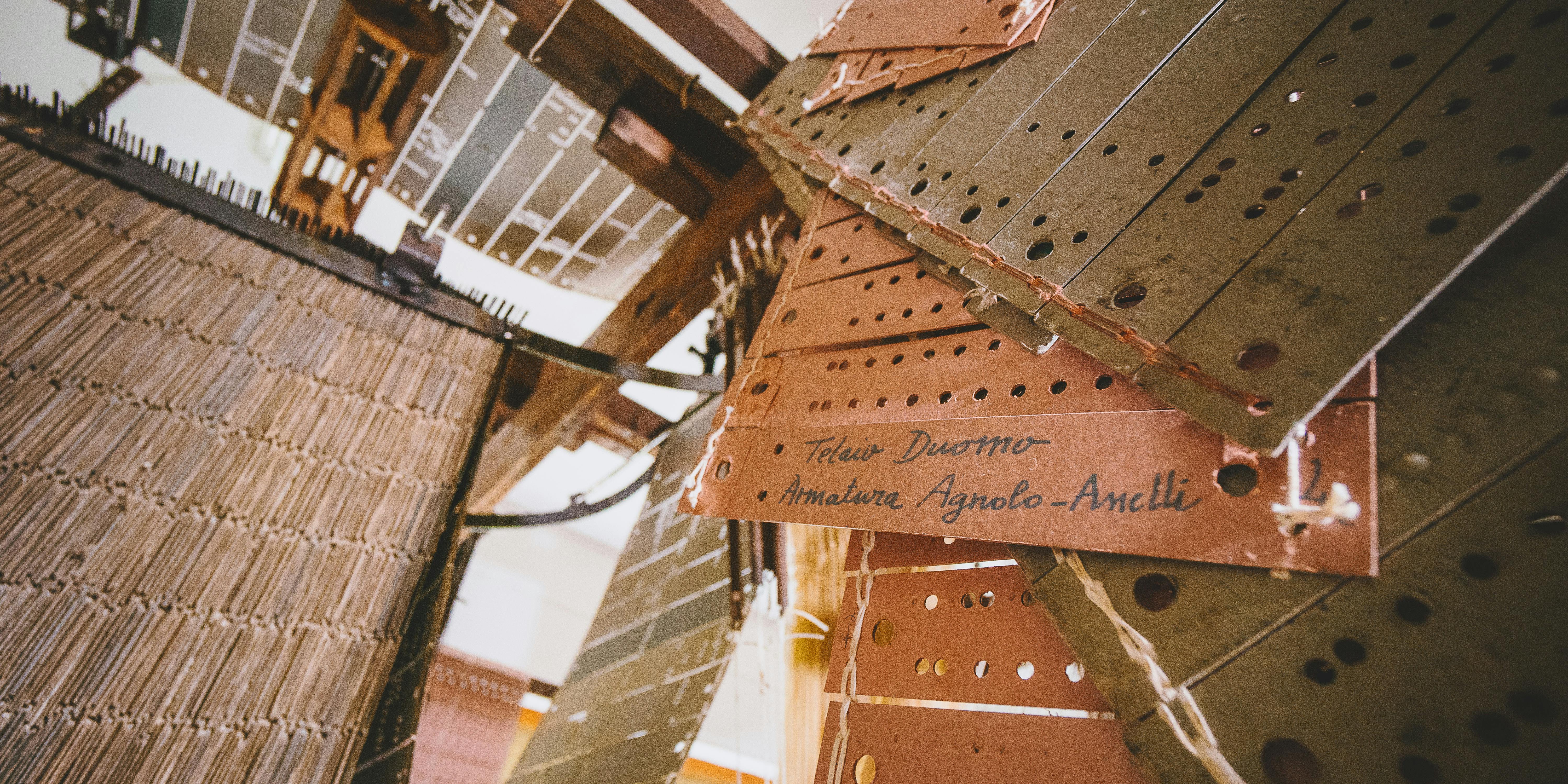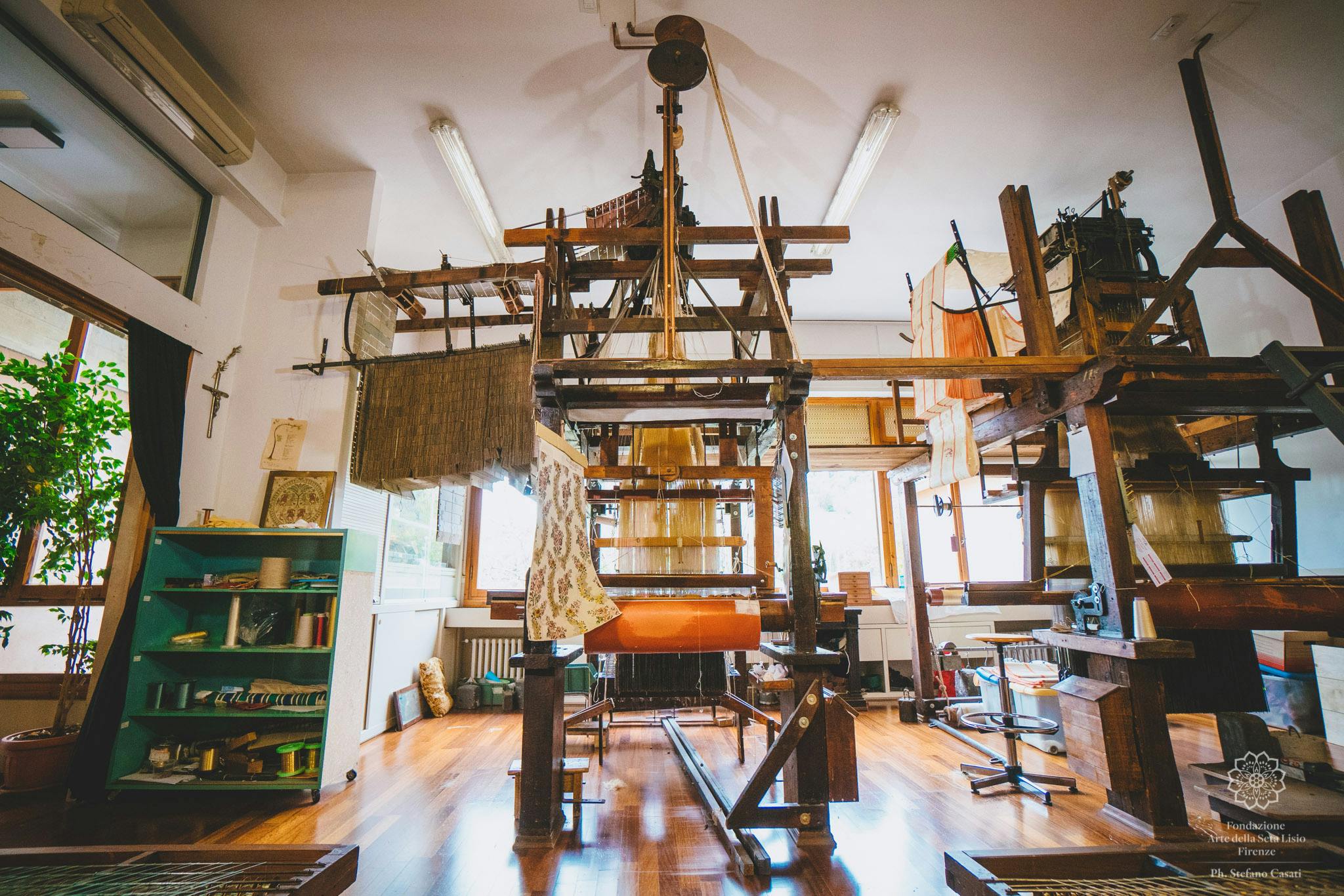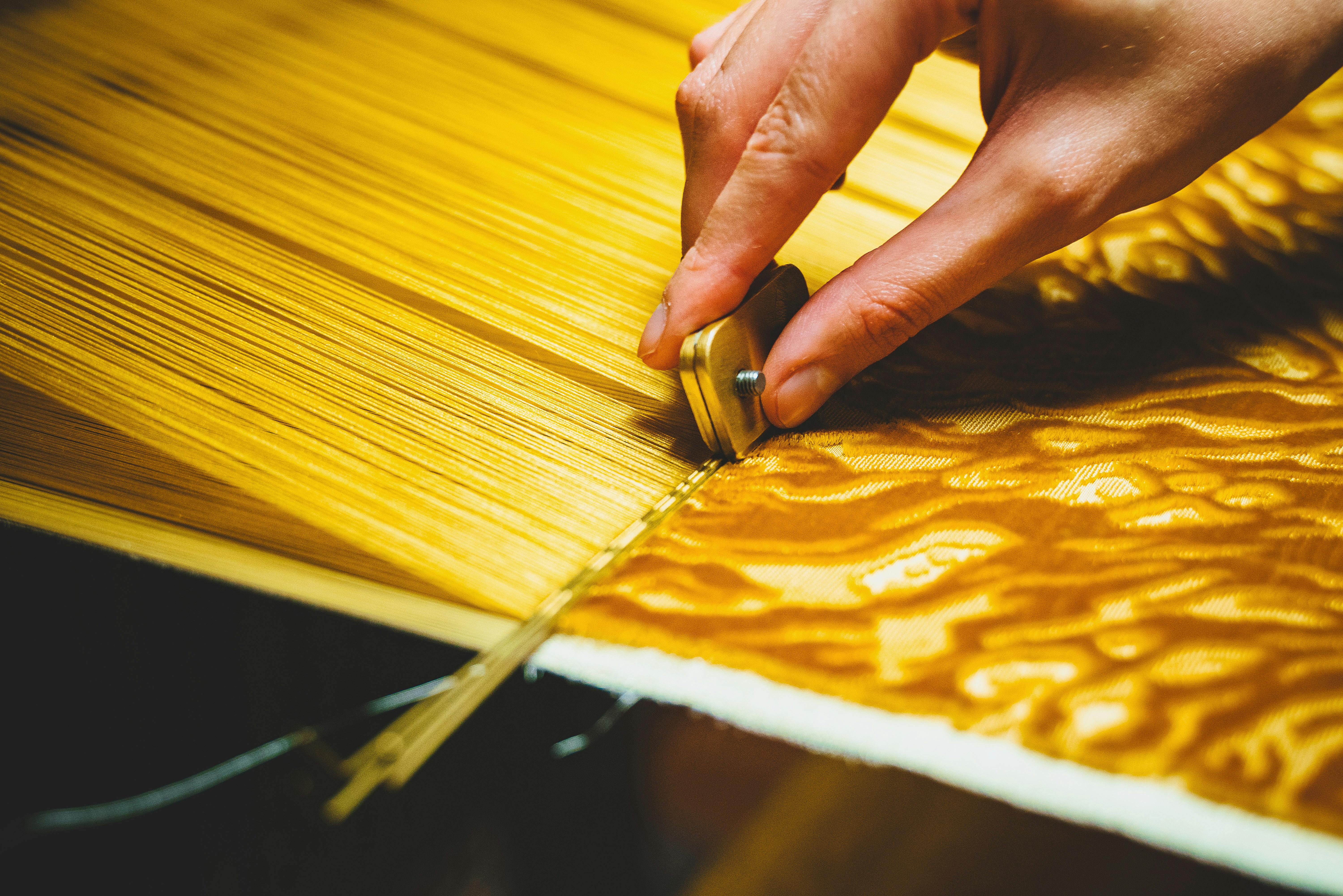 L'intero processo di produzione di un velluto o di un broccato tessuto a mano vede come prima fase la preparazione del telaio manuale.